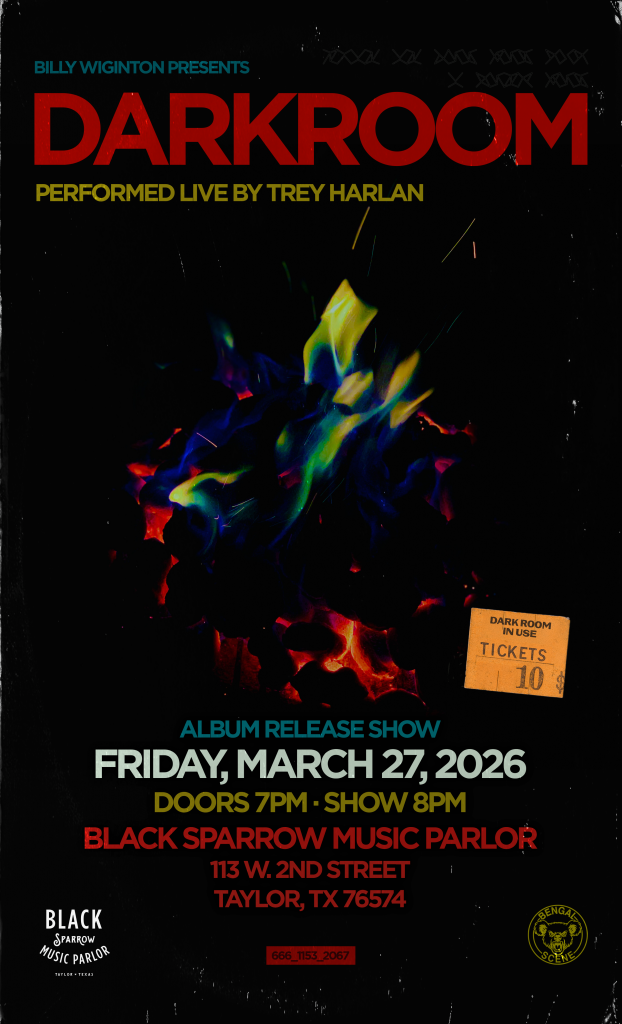 DARKROOM OUT MARCH 13TH PRE-SAVE HERE! DON’T MISS IT! March 27 2026 Album release show at Black Sparrow Music Parlor in Taylor, Texas GET TICKETS HERE ORDER A VINYL NOW! Share this:TweetEmail
